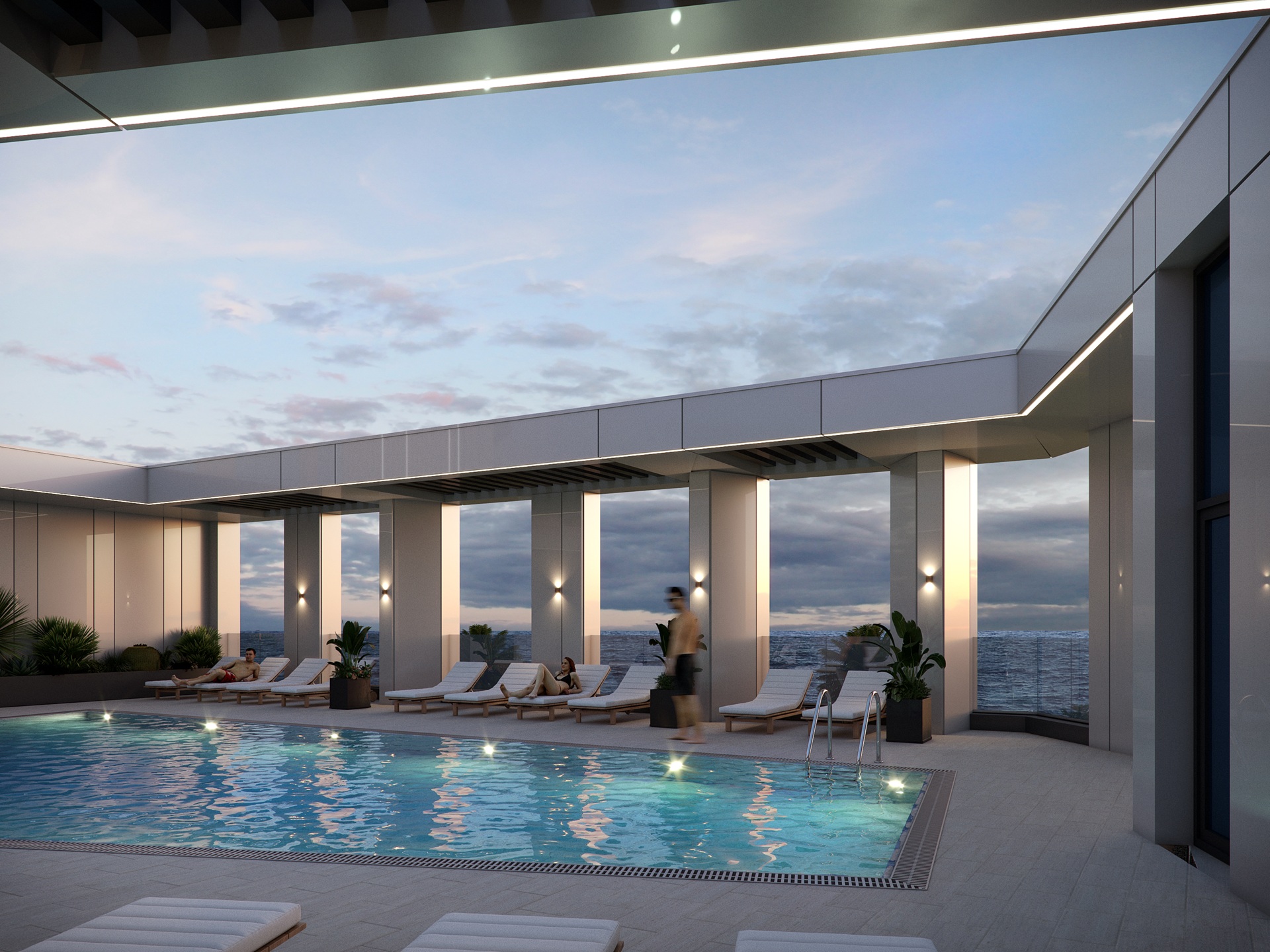 Насладитесь отдыхом в подогреваемом открытом бассейне над открытым небом на самом верху комплекса, так же есть барные стойки с коктейлями